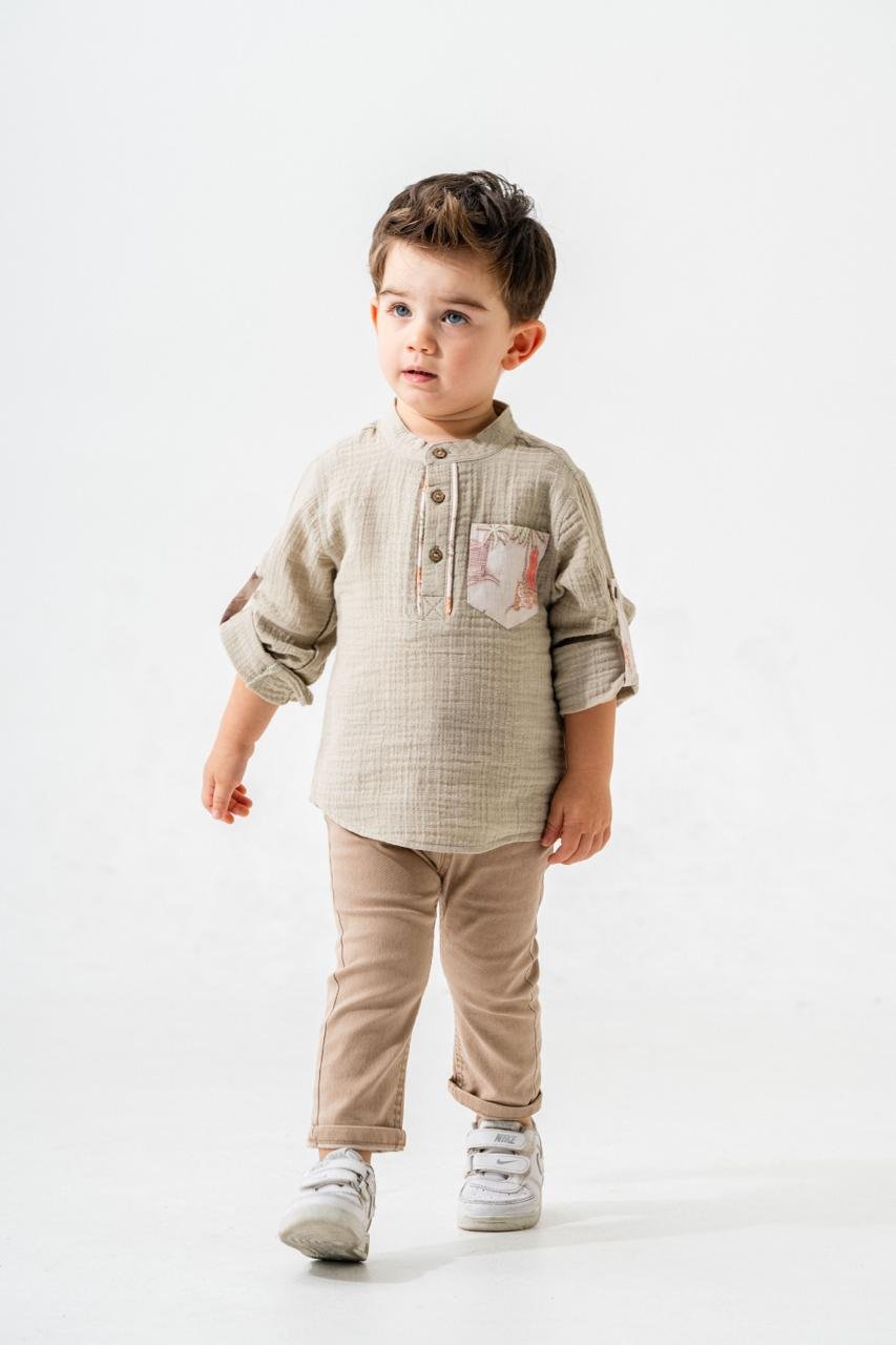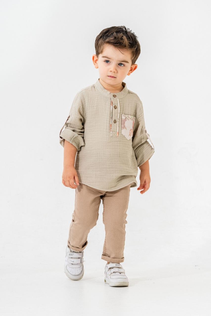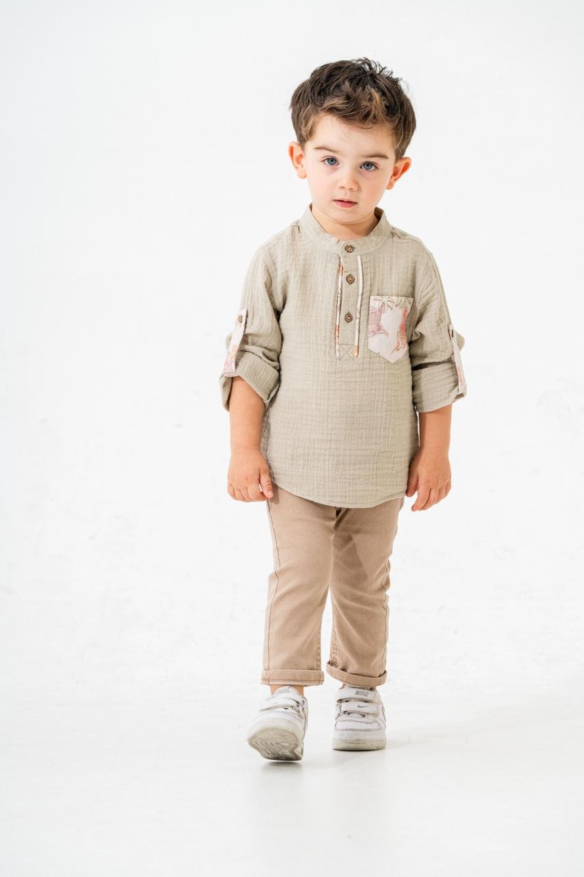 Dijital cep desenleri ve kaliteli dikiş detaylarıyla gömlek, stil sahibi genç beyefendiler için tasarlandı. Bu takım, şıklıkla beraber dayanıklılığı da vadediyor. Çocuğunuzun tarzı bu özel takımla bir adım öne çıksın!