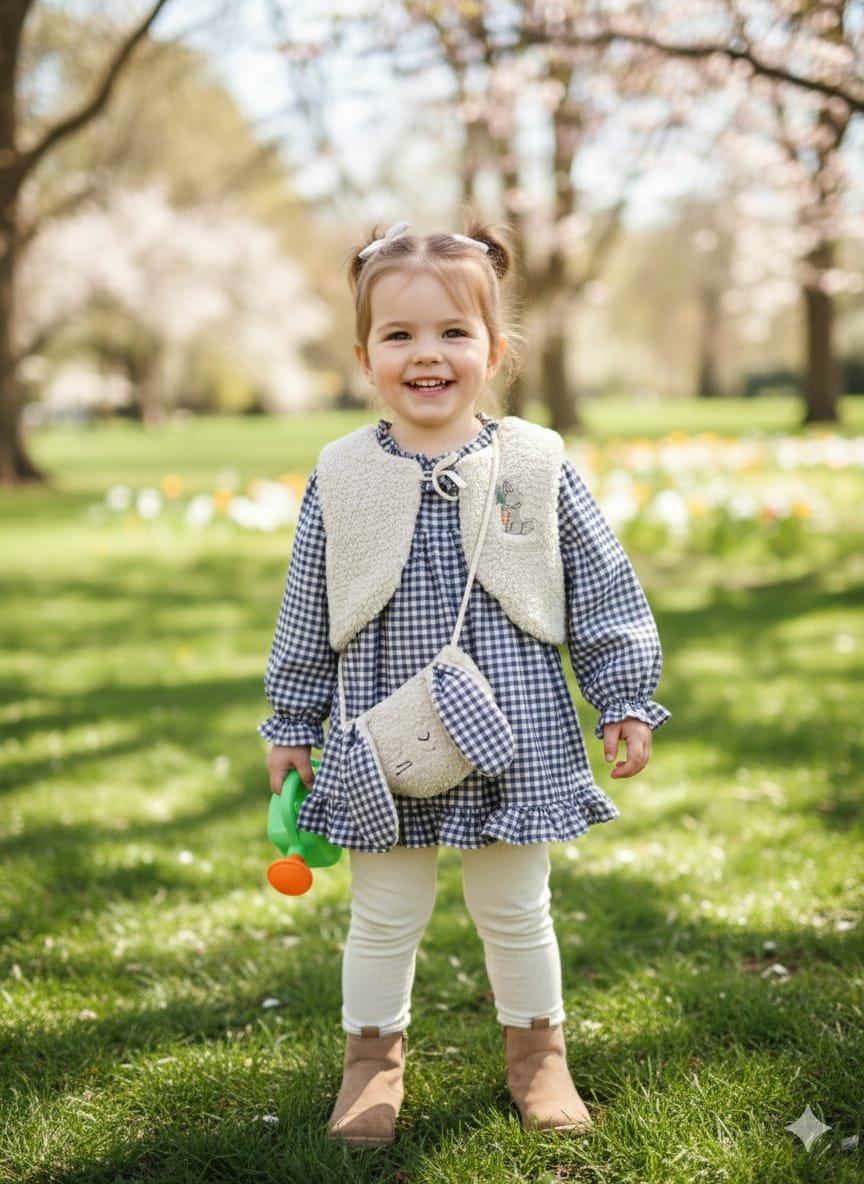 Elbisenin Rabbit çanta detayı, miniklerin kalbini kazanan ilave bir sevimlilik dokunuşu ekler. Hem şirin hem de işlevseldir. Bu elbisesi, özel günlerde hediye olarak verebileceğiniz ideal bir seçenektir. Doğum günü, bayram ya da herhangi bir kutlamada çocukları mutlu edecek bu hediyelik ürünle unutulmaz anlar yaratabilirsiniz.
